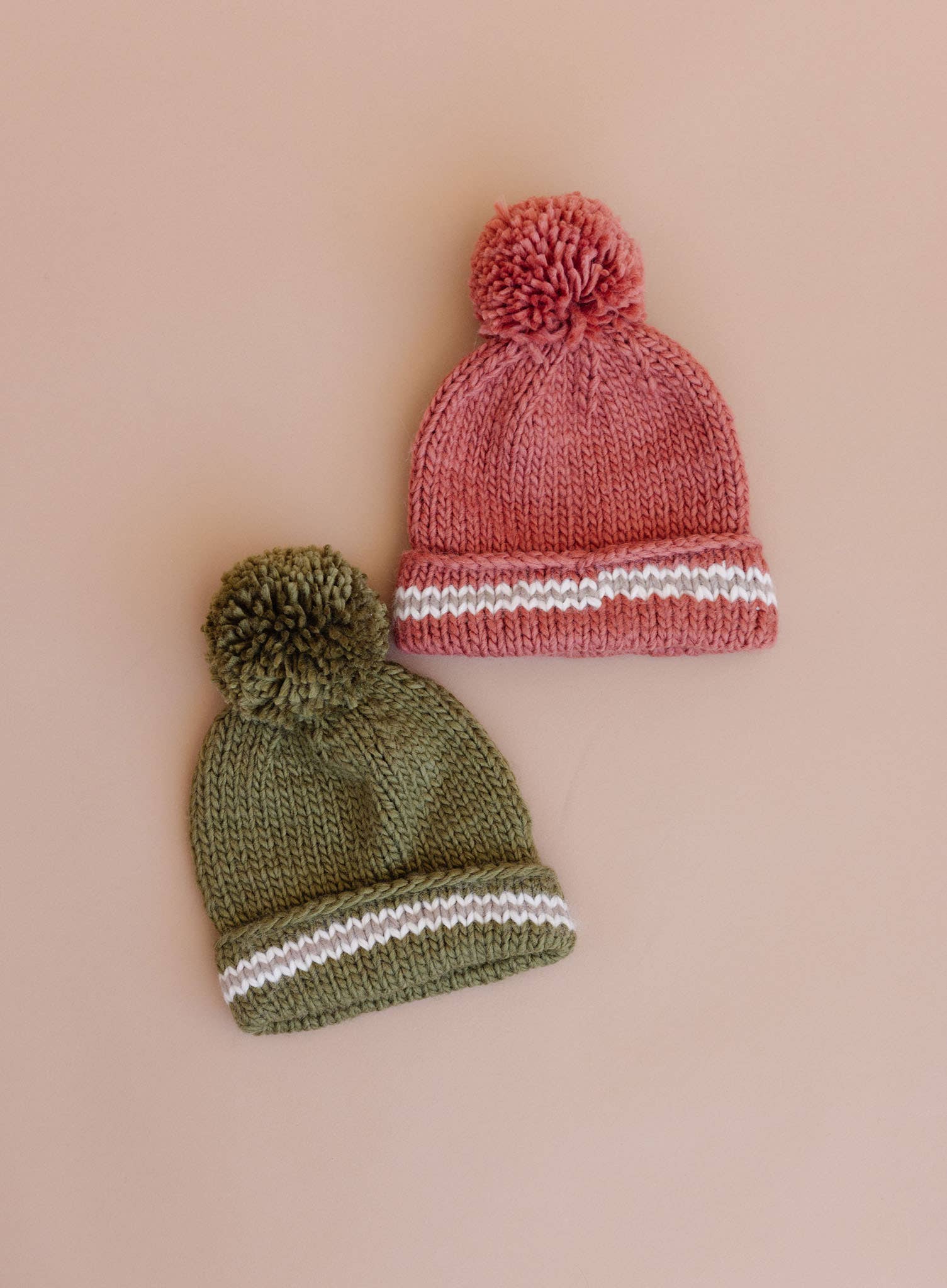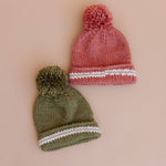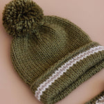 Get your head in the game with our Varsity beanie in Moss. Featuring Flax sleeves and Cream trim, this sporty beanie is made for fall fun and winter weather.