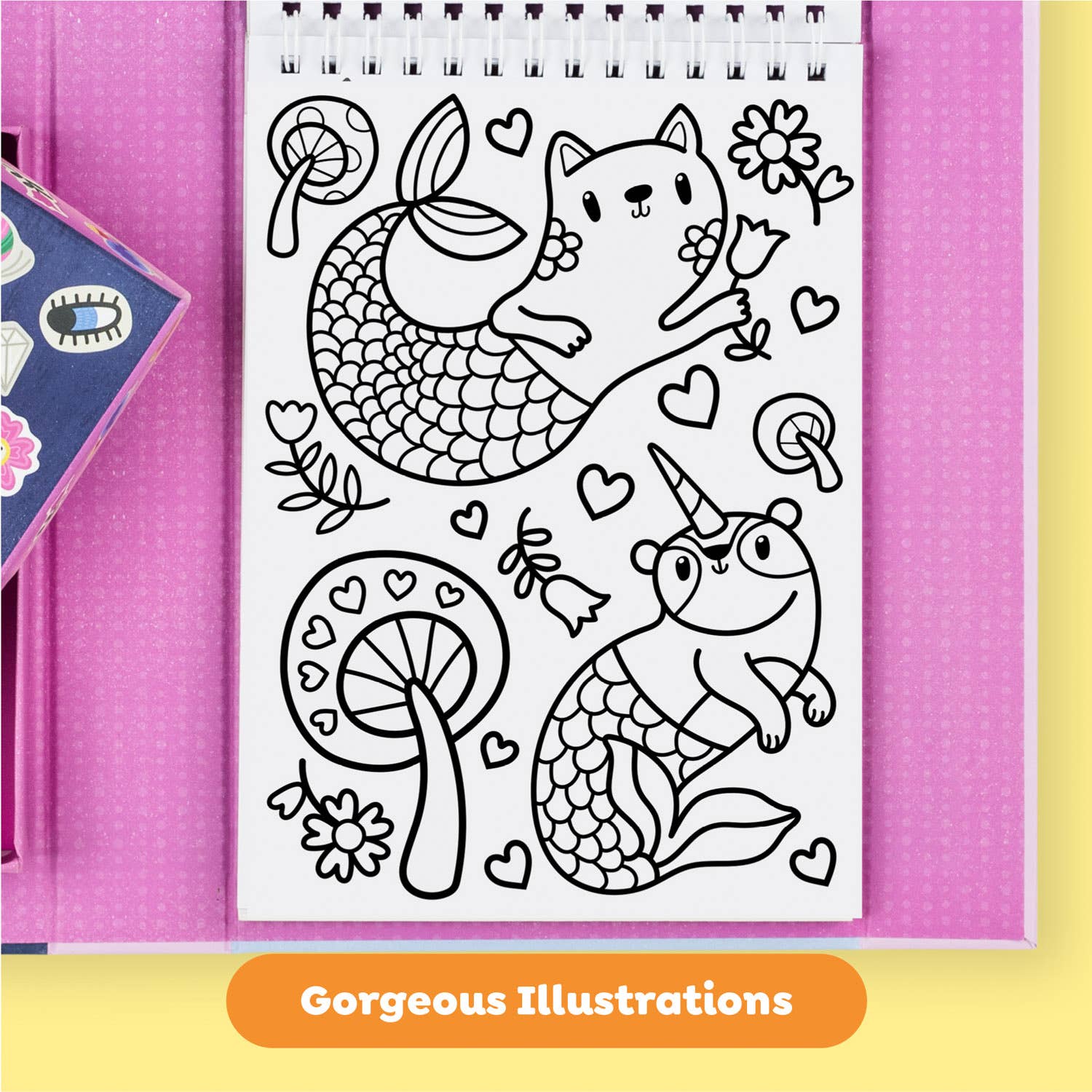 Kids will love this Magical Creatures coloring set filled with fantastical mernicorns, flying puppies and rainbow coloured kittens. Includes 10 vibrantly colored markers and 40+ stickers that will elevate every artwork to fridge-worthy status. Complete in our sturdy, magnetic-sealed case perfect for kids on the go.