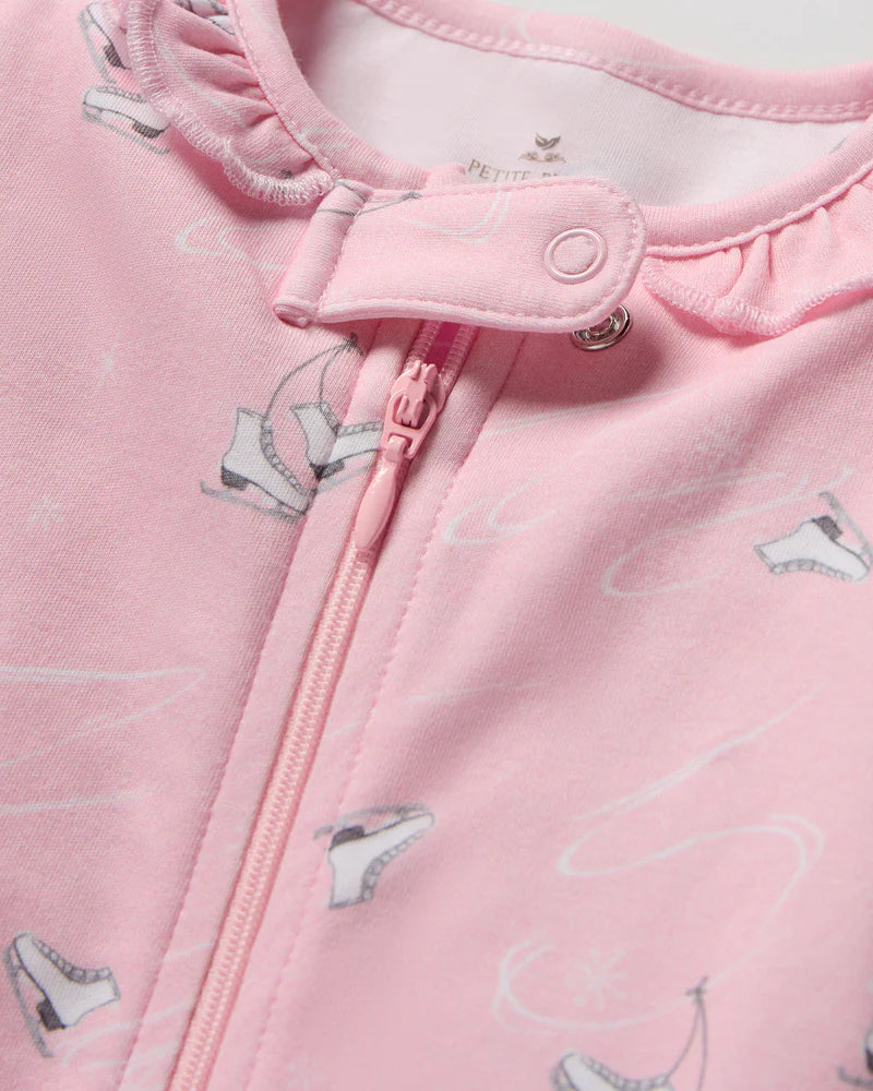 A graceful new print for dreams of gliding across the ice. Sleek white skates on a delicate pink background—all set for crisp afternoons of twirling and leaping across the rink. The bestselling Pima snug fit design will keep you comfortable as temperatures dip.