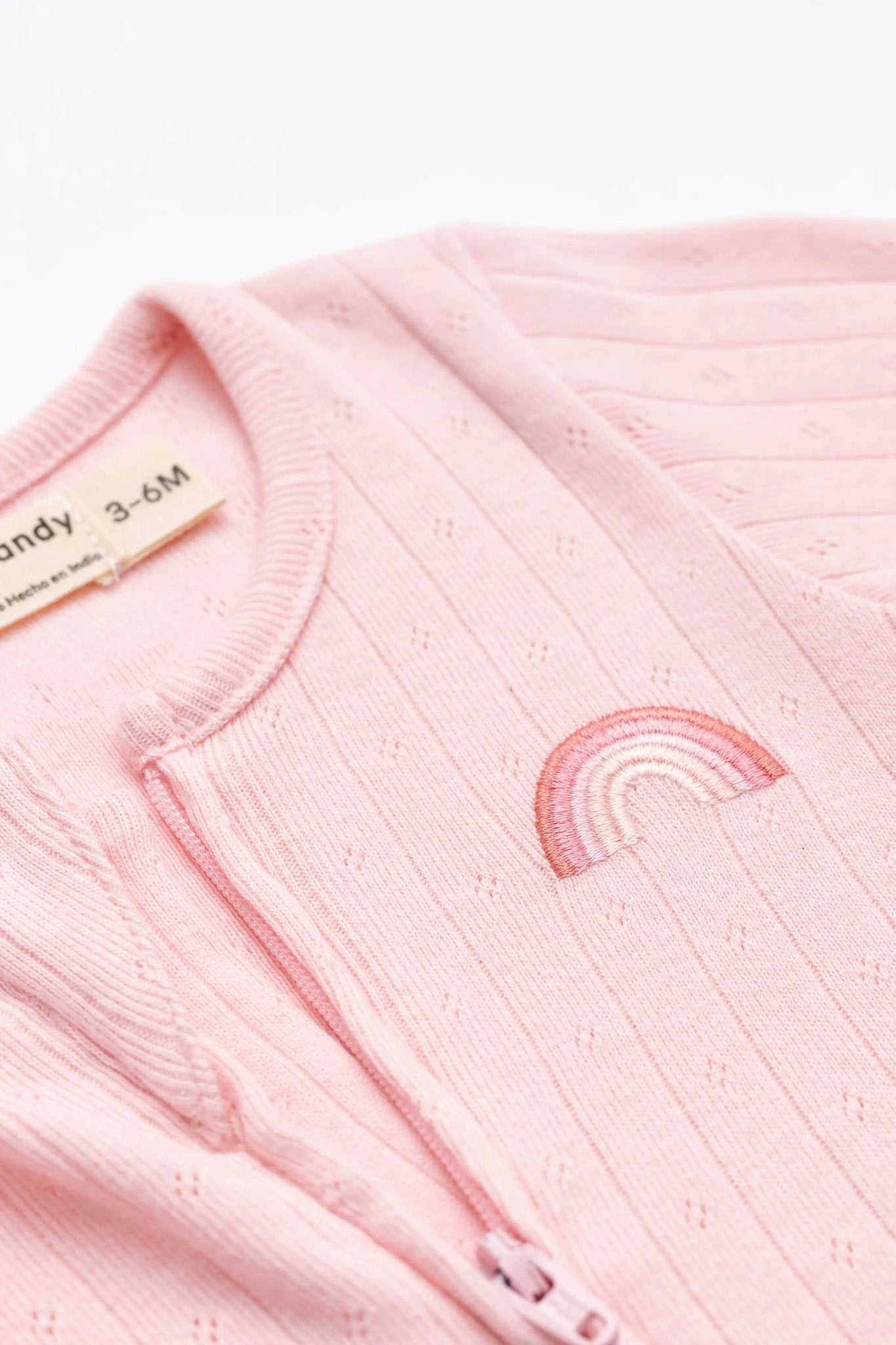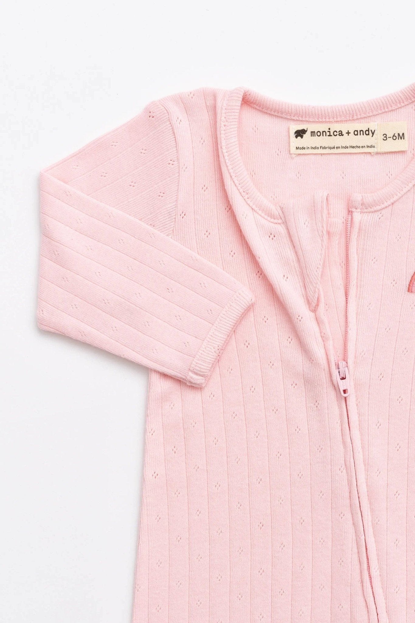 We’ve got this all zipped up—from toe to neck. • solids + prints: 95% organic cotton + 5% spandex • ribbed + pointelle: 100% organic cotton • zipper down the front +zipper cover at neck to keep toggle down • mix-and-match prints with blankets • lead, phthalate, and flame-retardant free • GOTS certified; the leading environmental standard for organic textiles • machine wash; tumble dry low