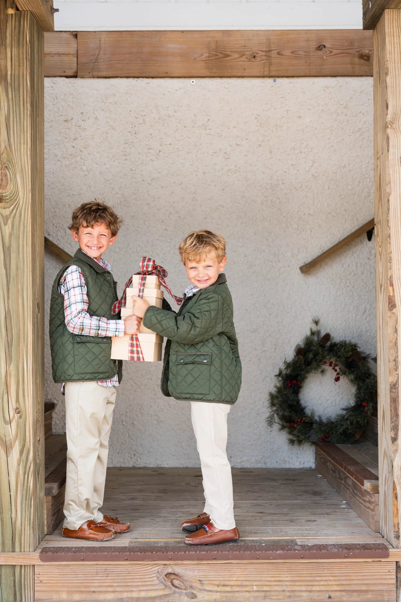 Keep your little one warm and stylish with the Derby Field Jacket. Made from soft, mid-weight quilted fabric, this snap-front jacket features branded brass snaps, a cozy corduroy collar, and double pockets for practicality and charm. Whether it’s an outdoor adventure or a casual day out, the Derby Field Jacket is the perfect layer for fall and beyond.
