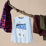 A returning favorite from our Sweden collection, this design celebrates the thrill of winter adventures on the slopes. Made of soft 100% cotton jersey with interior neck tape for lasting quality. Style it with our fan-favorite Playwear Pants, our Cozy Lined Pants, or any of our joggers for an easy everyday look.