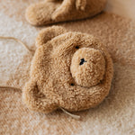 Our new teddy bear purse will add a touch of cuteness to your little one's outfit. Includes a zipper closure.