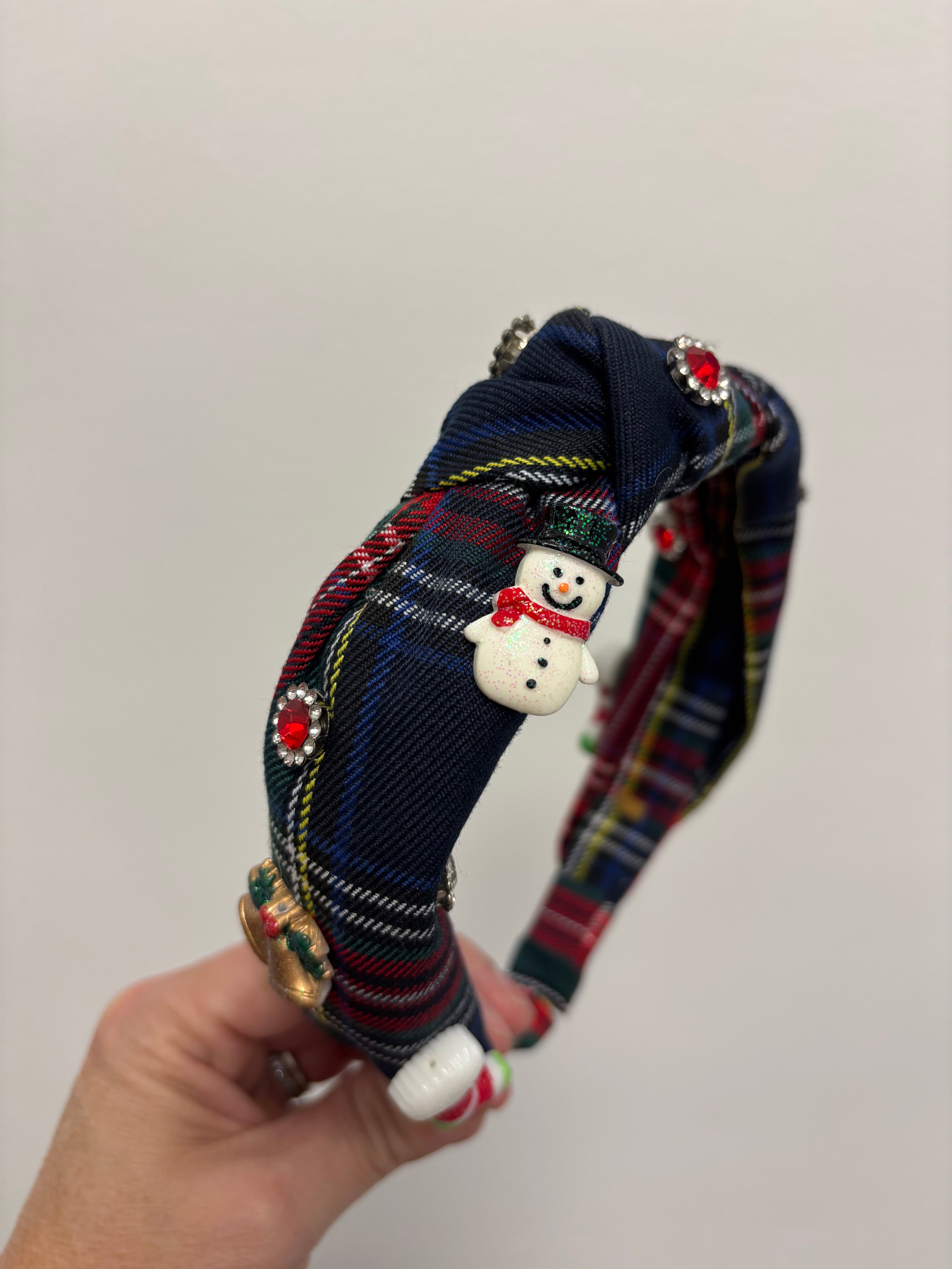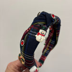 Blue Tartan with Christmas Gems Headband