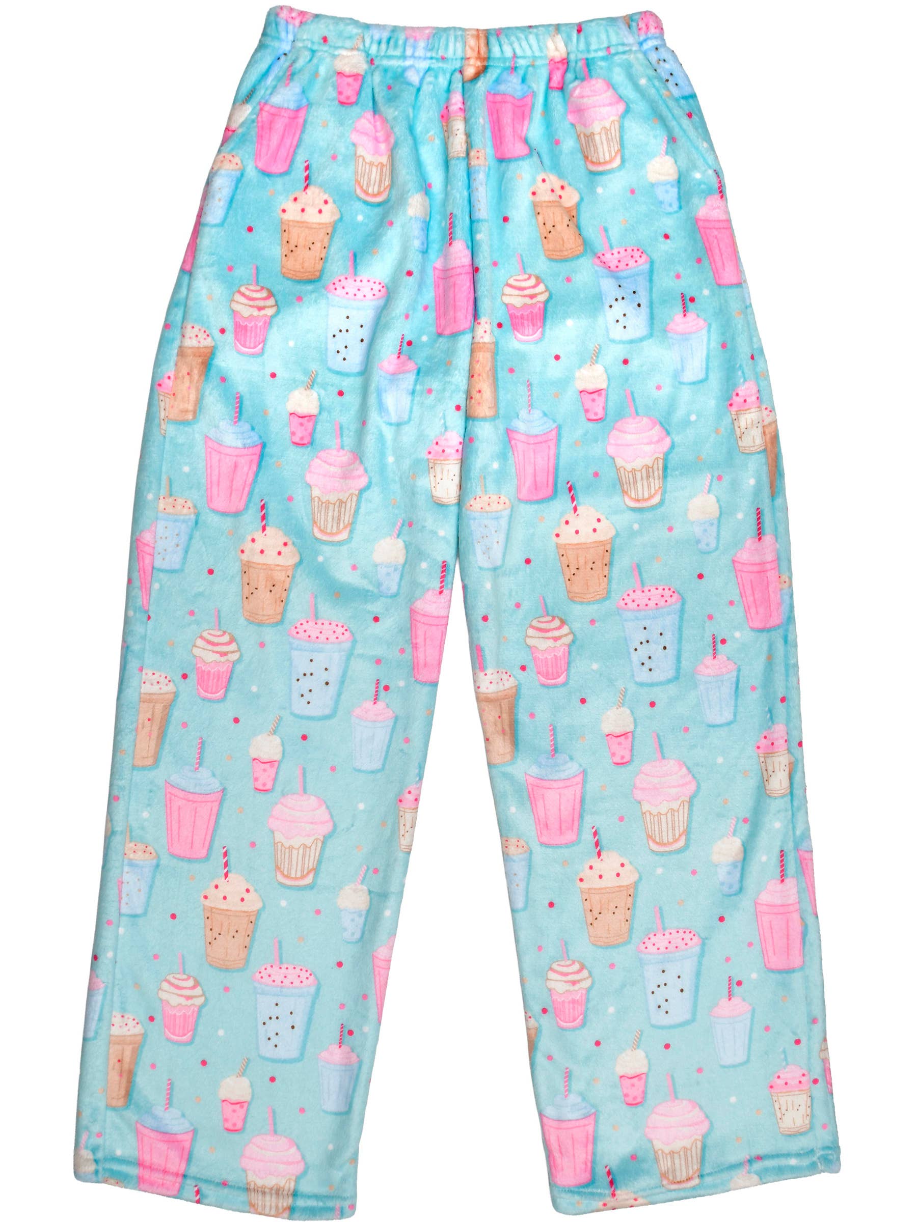 Treat your loungewear collection to a delicious upgrade with the Milkshake Plush Pants by Iscream! These ultra-dreamy bottoms feature a refreshing light blue base topped with a vibrant, colorful milkshakes scatted throughout the print that’s almost sweet enough to drink. Perfectly practical and fun for everyone, these pants are machine washable, available in children’s sizes, and are sure to make every snack break feel like a party!