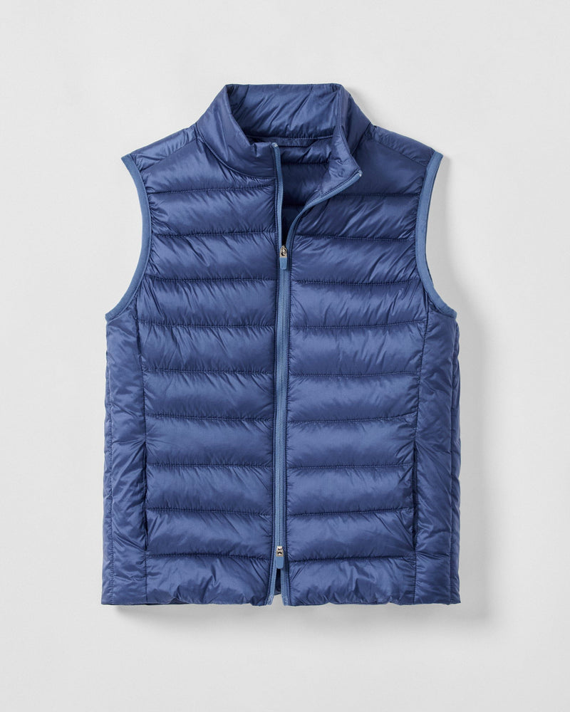 Performance was top of mind when we designed this puffer vest, made to keep your little guy moving in comfort and style. Made from 100% recycled nylon, it is lightweight yet warm, with zippered side pockets and a signature puller for easy wear. From tee time to dinner time, this sharp layer is built to last through every outing..