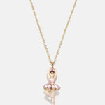 Make their accessorizing extra easy with the Let's Dance Kids' Necklace. This necklace comes complete with a ballerina pendant on a dainty gold chain.