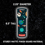 Look through the eyepiece and experience the magic of the kaleidoscope. The Solar System Kaleidoscope from Mudpuppy reveals colorful jewels when you turn the viewing tube. The colorful artwork features planets, comets and spaceships! • 6.5" tall x 2.25" diameter, 6 cm diameter, 16.5 cm tall • Sturdy matte-finish board material • Ages 3+ • All Mudpuppy products adhere to CPSIA, ASTM, and CE Safety Regulations • Classic toy format