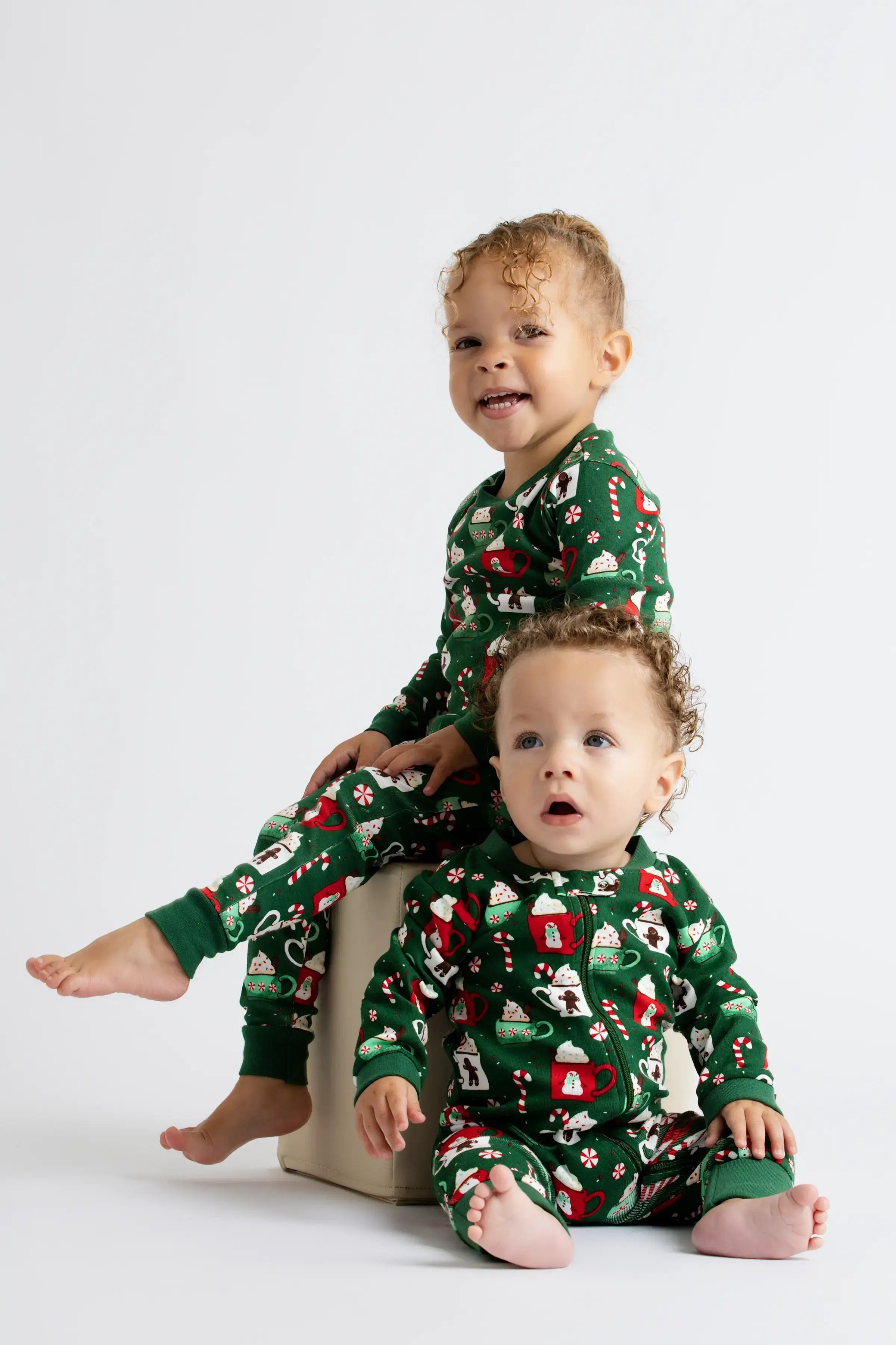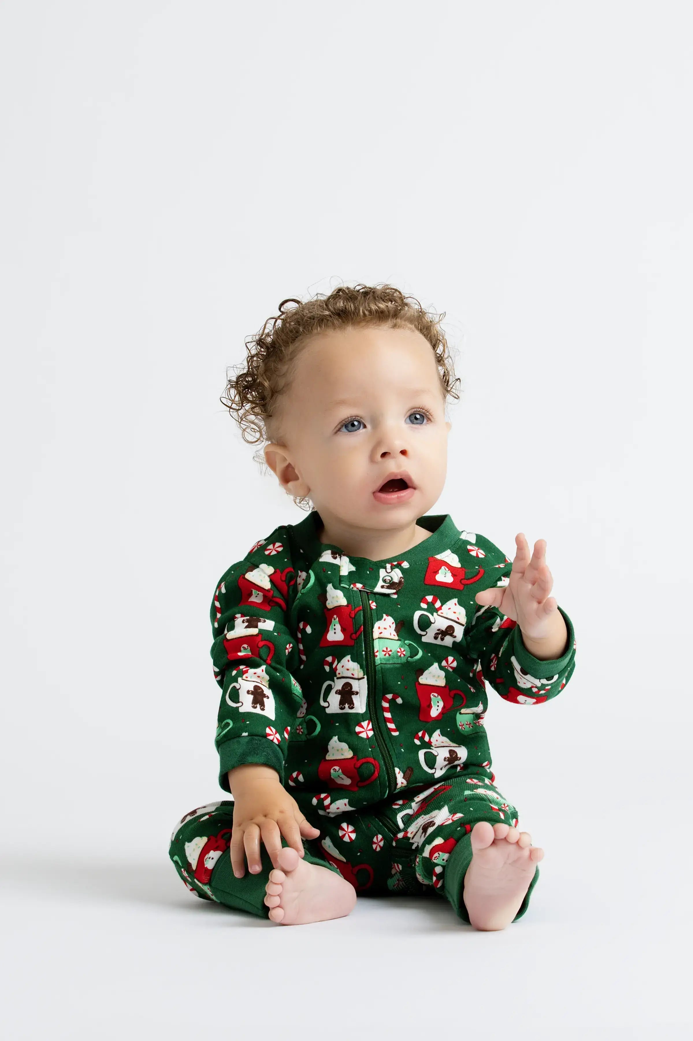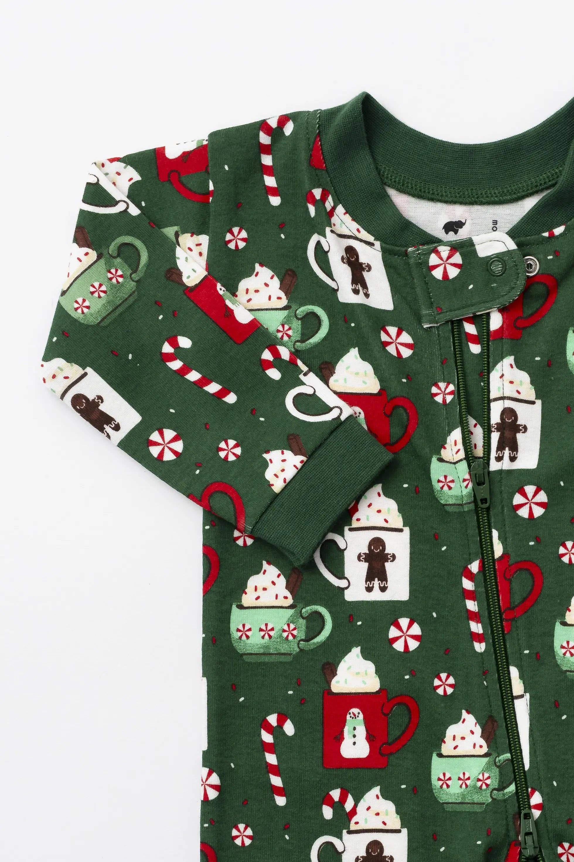 * 100% organic cotton * one-piece long sleeves + pants * easy on and off asymmetrical zipper from front neck to the left leg * convertible fold over feet * lead, phthalate, and flame-retardant free * GOTS certified; the leading environmental standard for organic textiles * machine wash; tumble dry low * wear snug fitting; not flame resistant