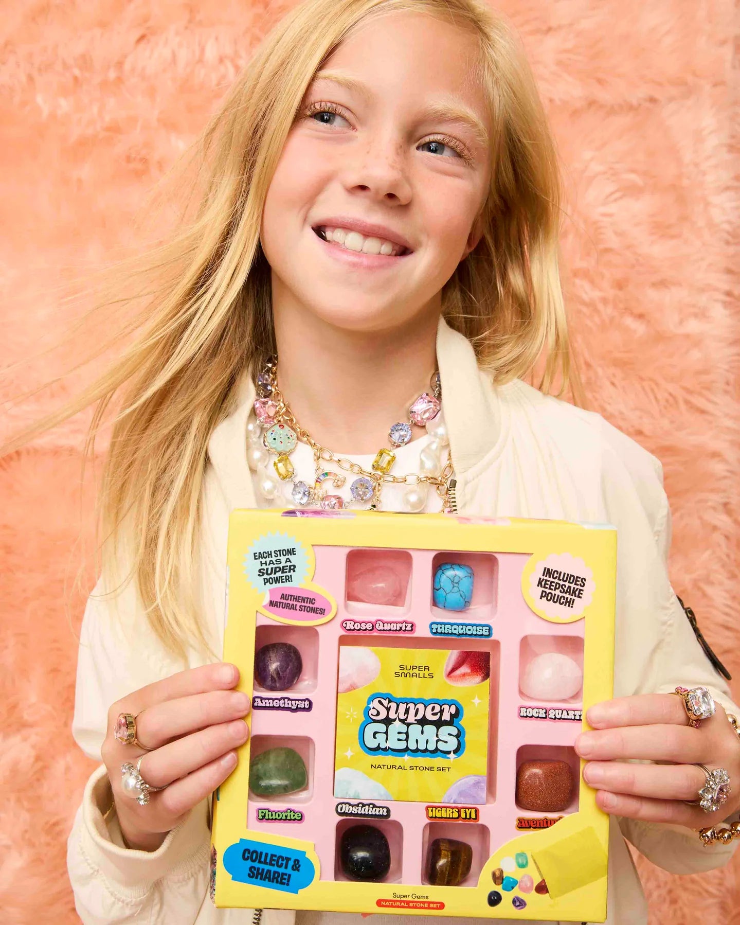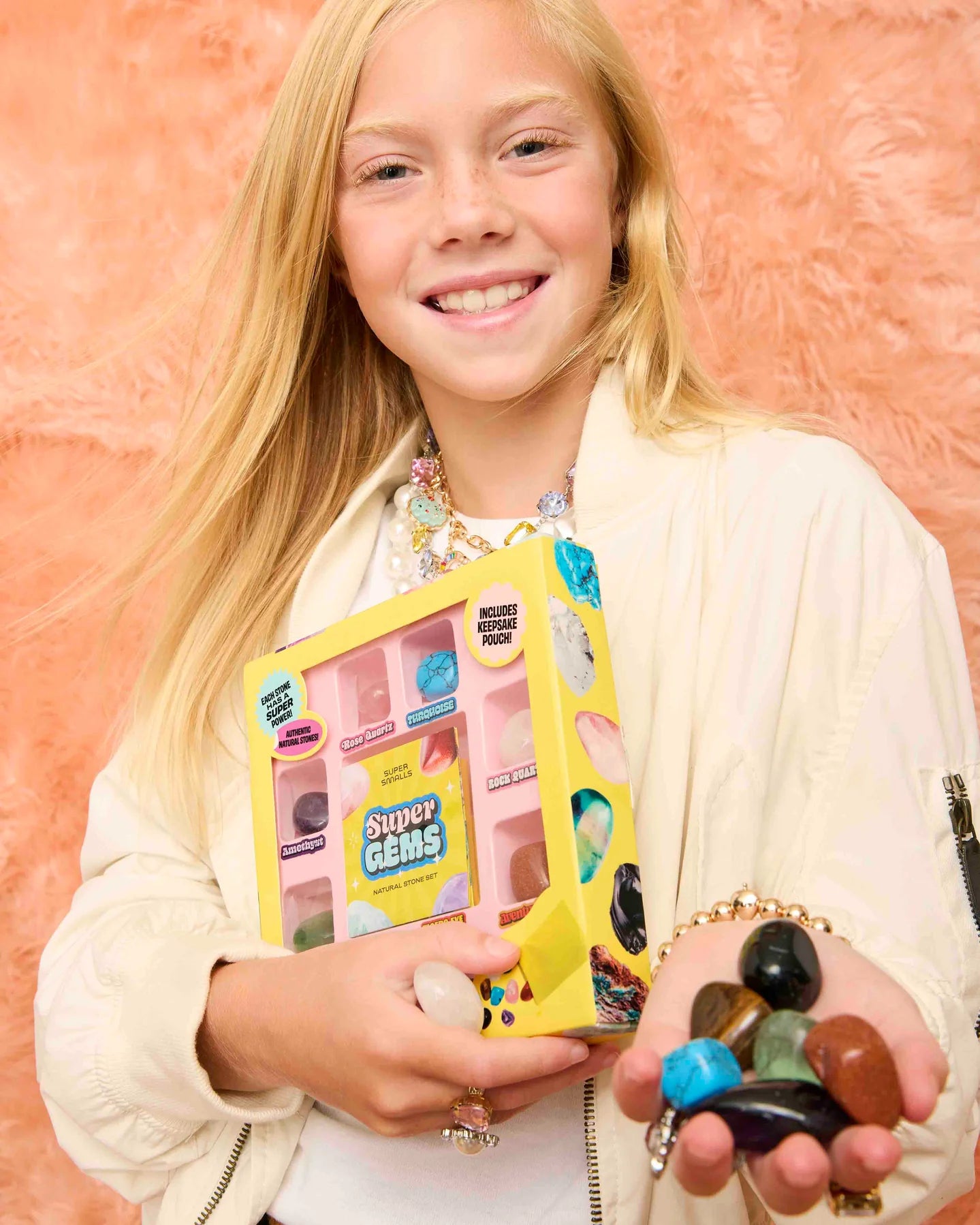 Give the gift of sparkle and strength. The Super Gems Natural Stone Set includes 8 real gemstones, each with its own unique “super power”—from courage to creativity to kindness. Inside the box, kids will find a bright yellow keepsake pouch for storing their favorite stones, plus a colorful booklet that explains the magic and meaning behind each one. It’s a hands-on way to explore nature, imagination, and everyday empowerment.