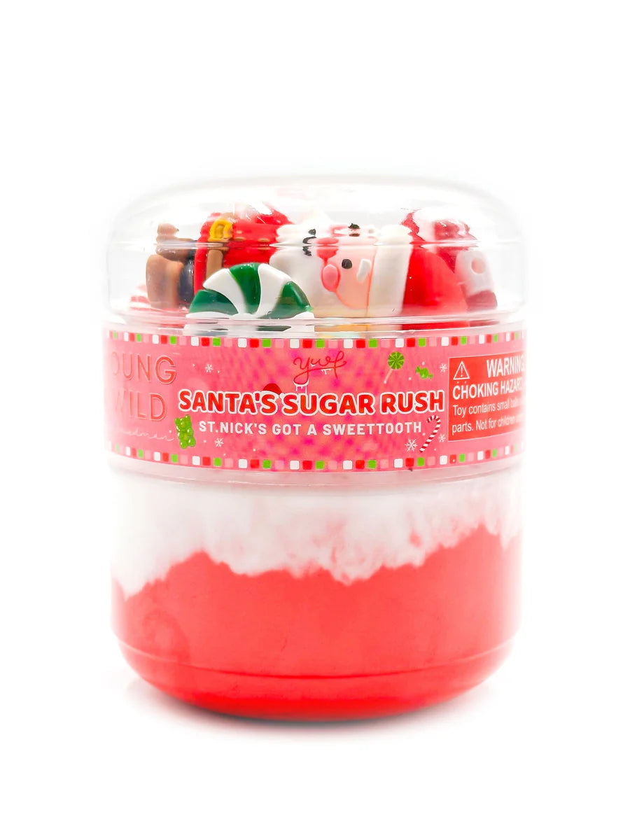 St. Nick's got a sweet toother! This Young Wild and Friedman Santa's Sugar Rush Slime is a fluffy clay slime with a light peppermint scent and candy inspired mix-ins.