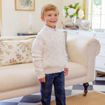 The Crawford Crewneck in Palmetto Pearl is the perfect layering piece! Your little one will love how soft and warm this sweater is, and you'll love how cute it looks!.
