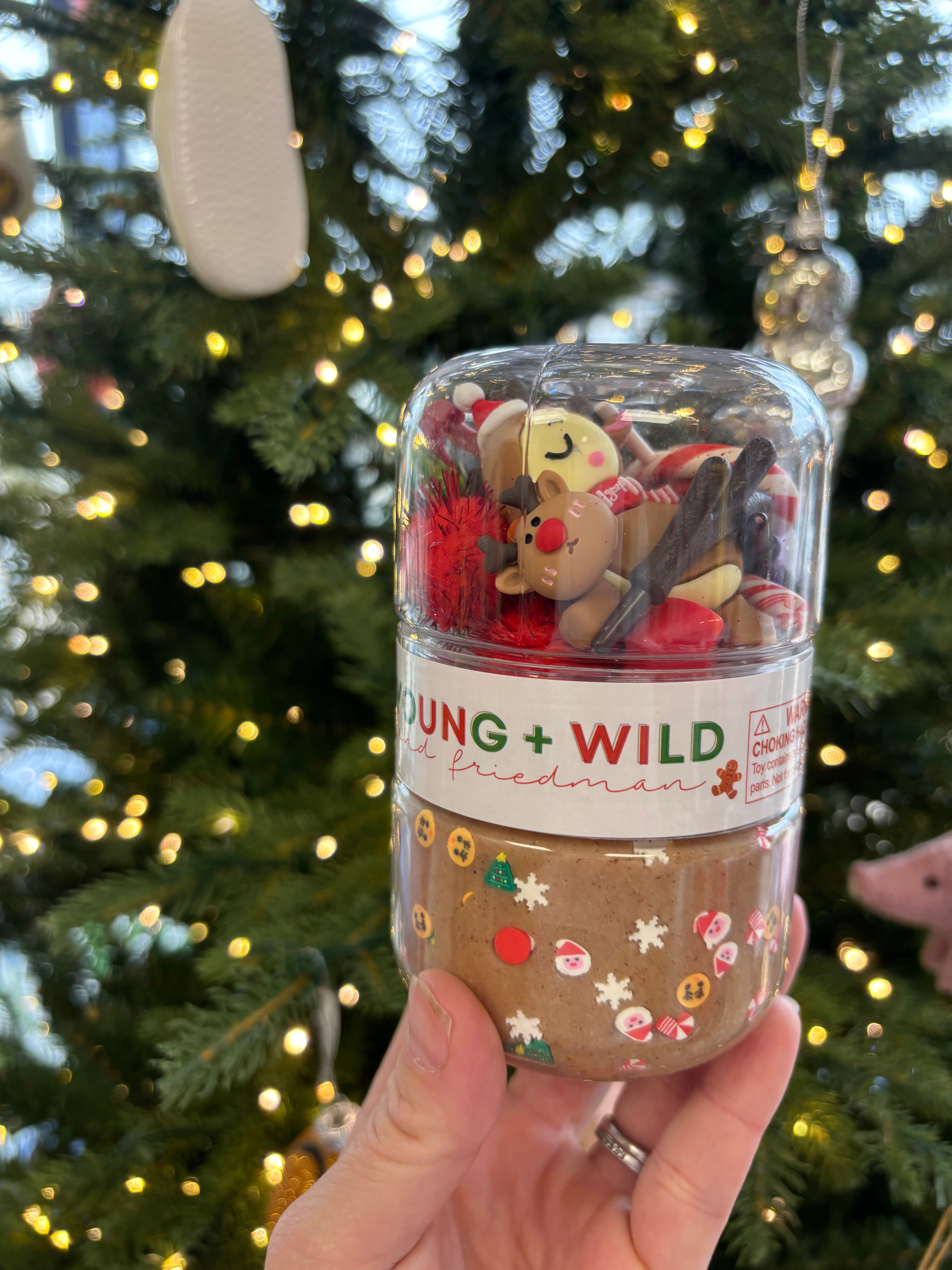 This Young Wild & Friedman Grab & Go Dough Jar comes with one jar of their amazing all-natural sensory dough and a separate screw-on jar filled with everything you need to make the cutest Reindeer scene!